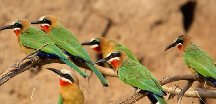 When the day is hot and the lions lie belly-up in the shade of a tree, it’s time to look up and witness the busy bird life above you. Glimpse flashes of iridescent colour and hear the melody of songbirds. Perhaps you’ll spot weavers squabbling over space and materials while constructing their intricately woven nests. Or maybe you’ll witness the tango between potential mates as the male puffs out his feathers and aims to impress.